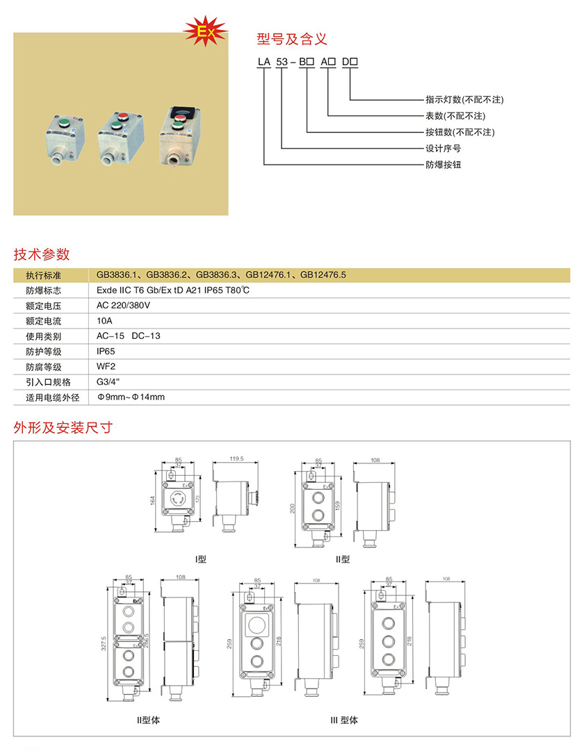 LA53系列防爆控制按钮(IIB、IIC)