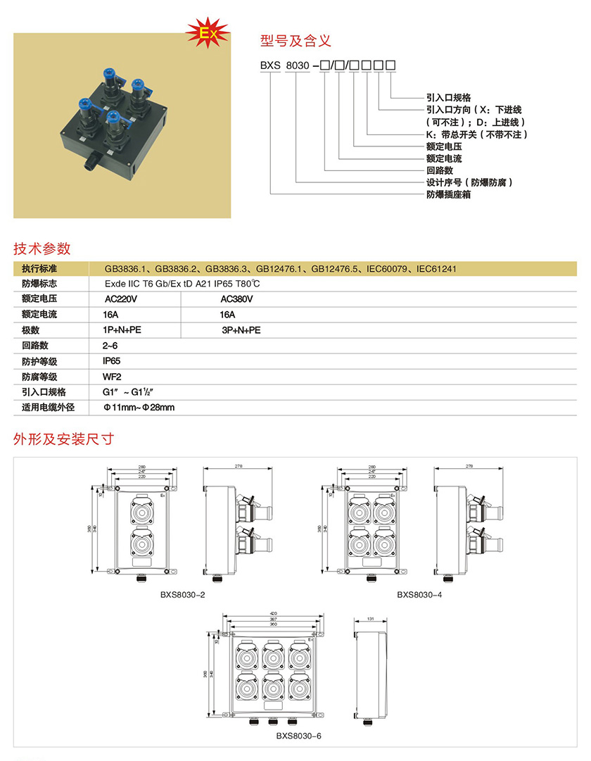 BXS8030系列防爆防腐电源插座箱(IIB、IIC)